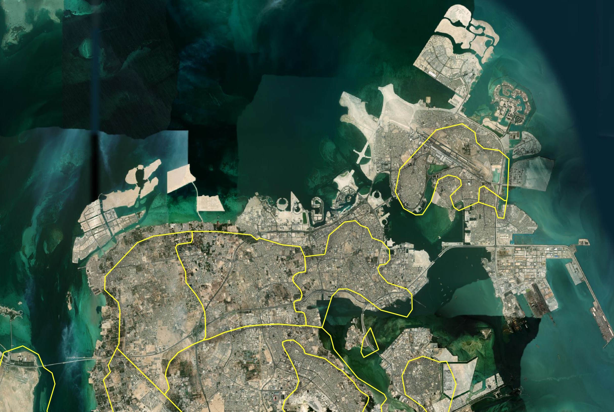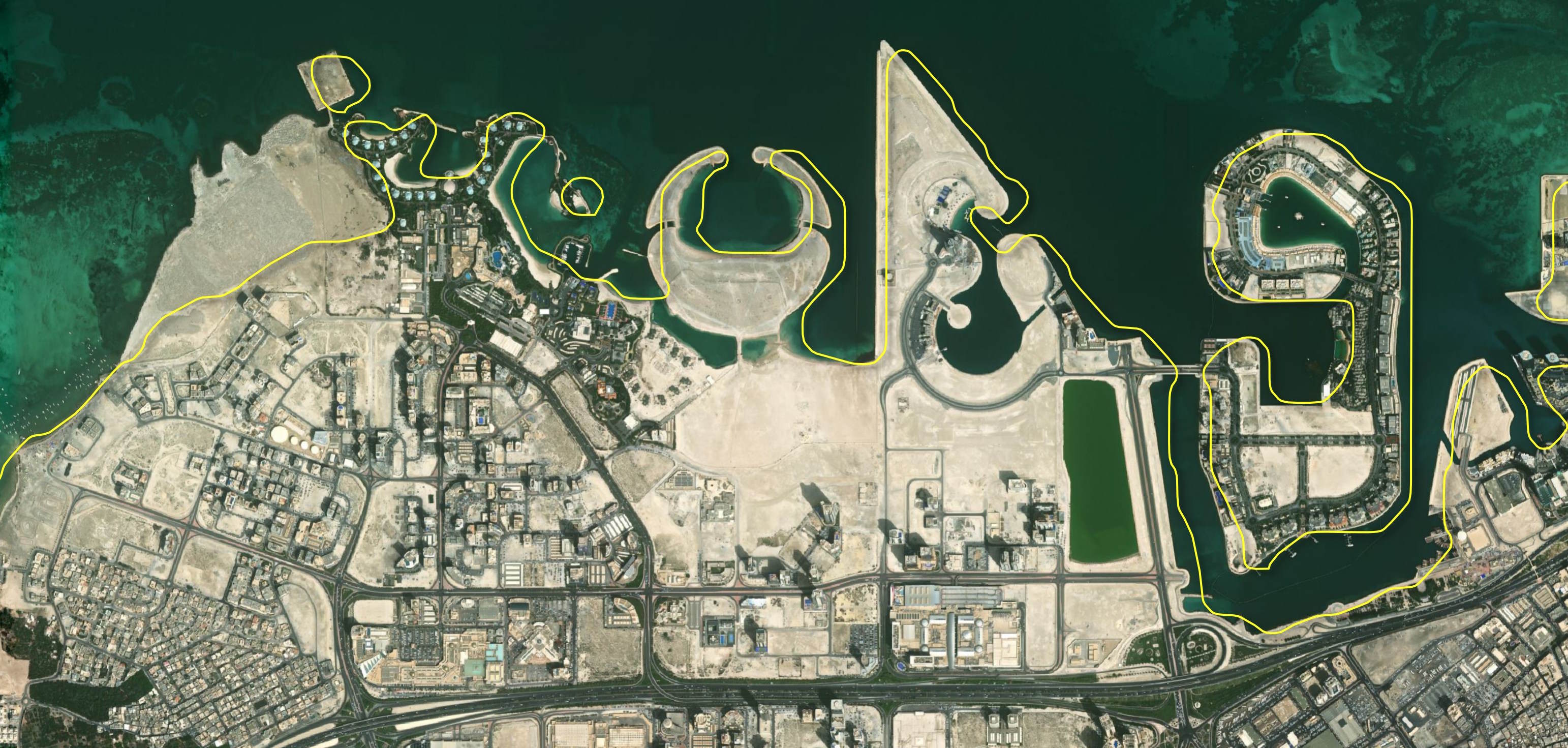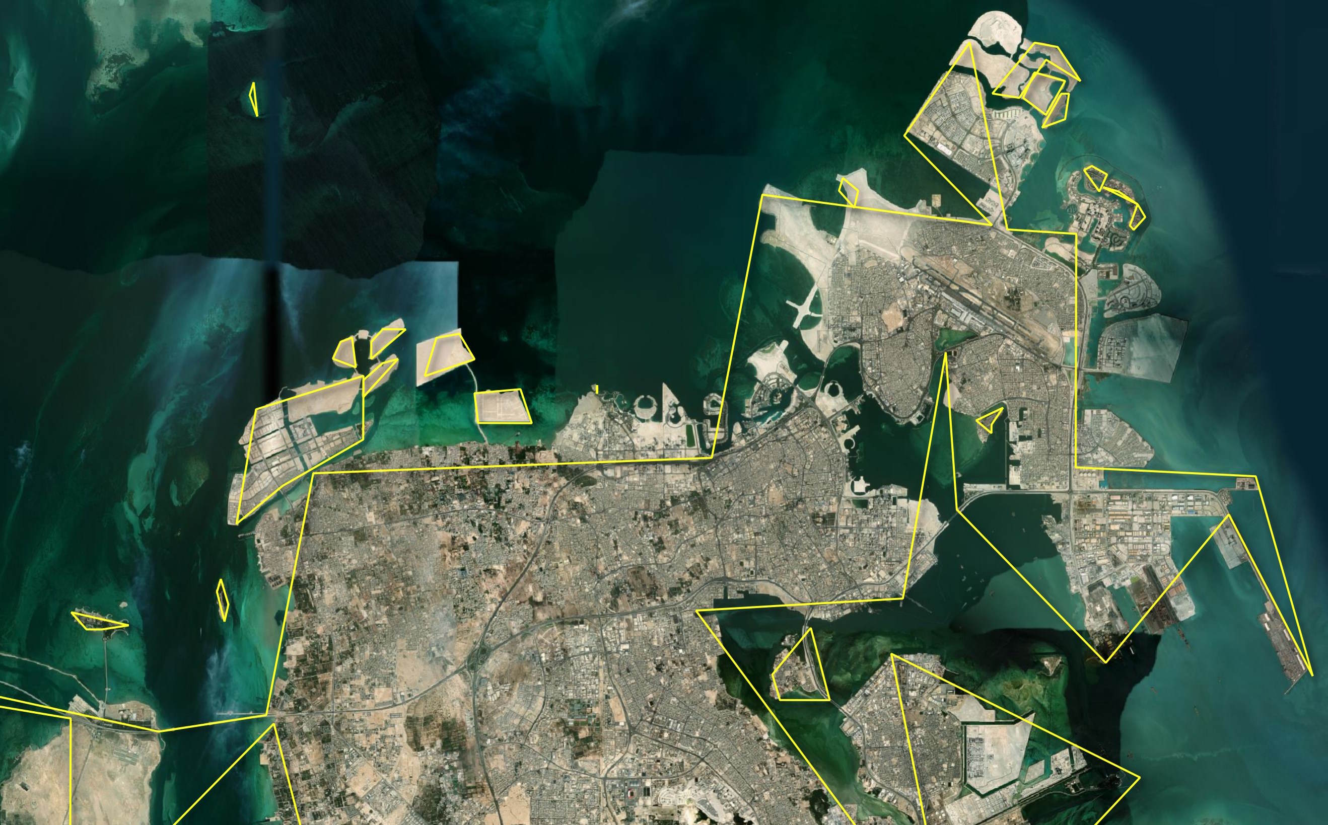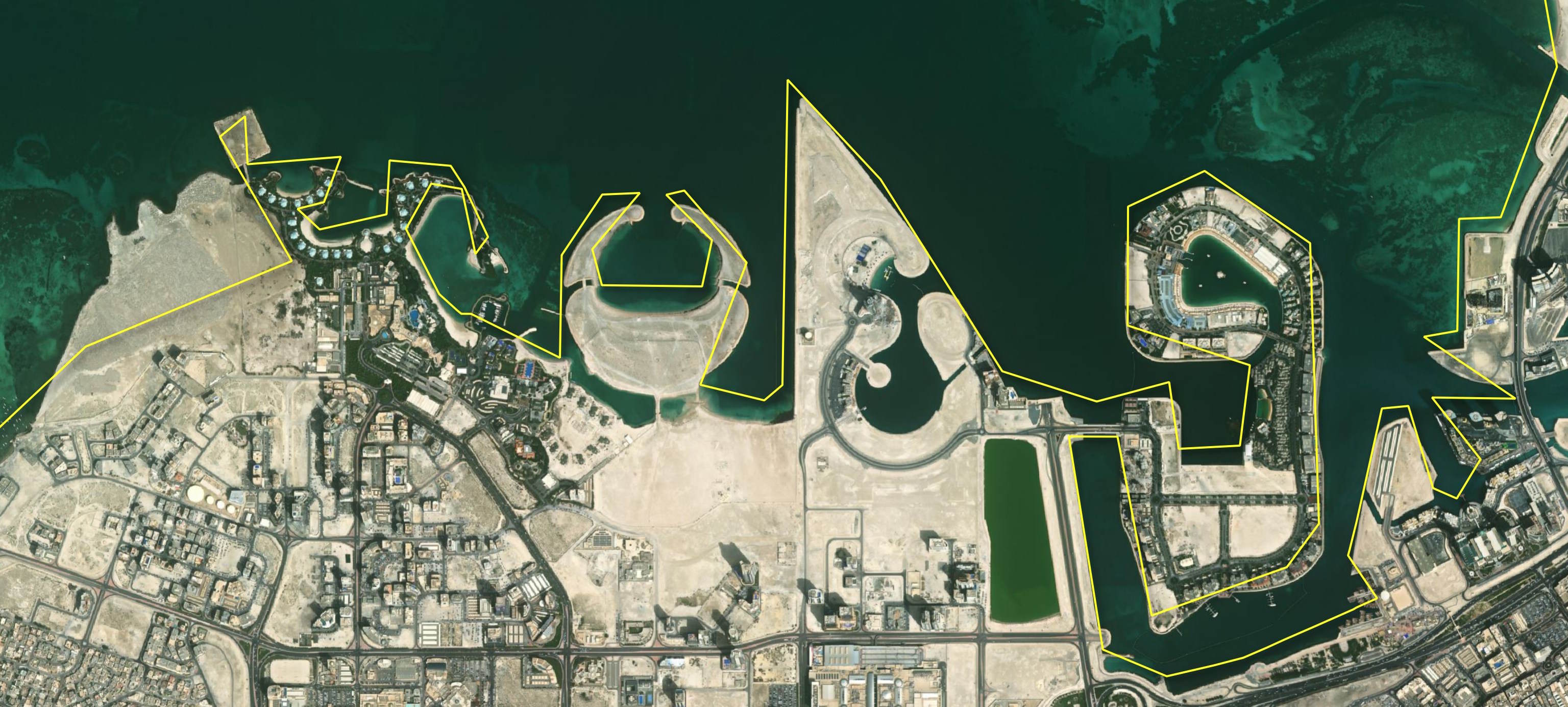 The following shows the overlap between the datasets that cut corners around Bahrain's Northern coast. I excluded WOF as it made the map too complex.